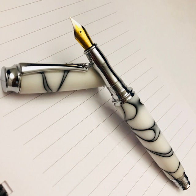Each pen ordered will include a black ink cartridge and a refillable ink cartridge pump so you can choose to use your own ink if desired. Instruction on care is also included. Call or write us to request any other style pen as we may be able to create it into a fountain pen for you.